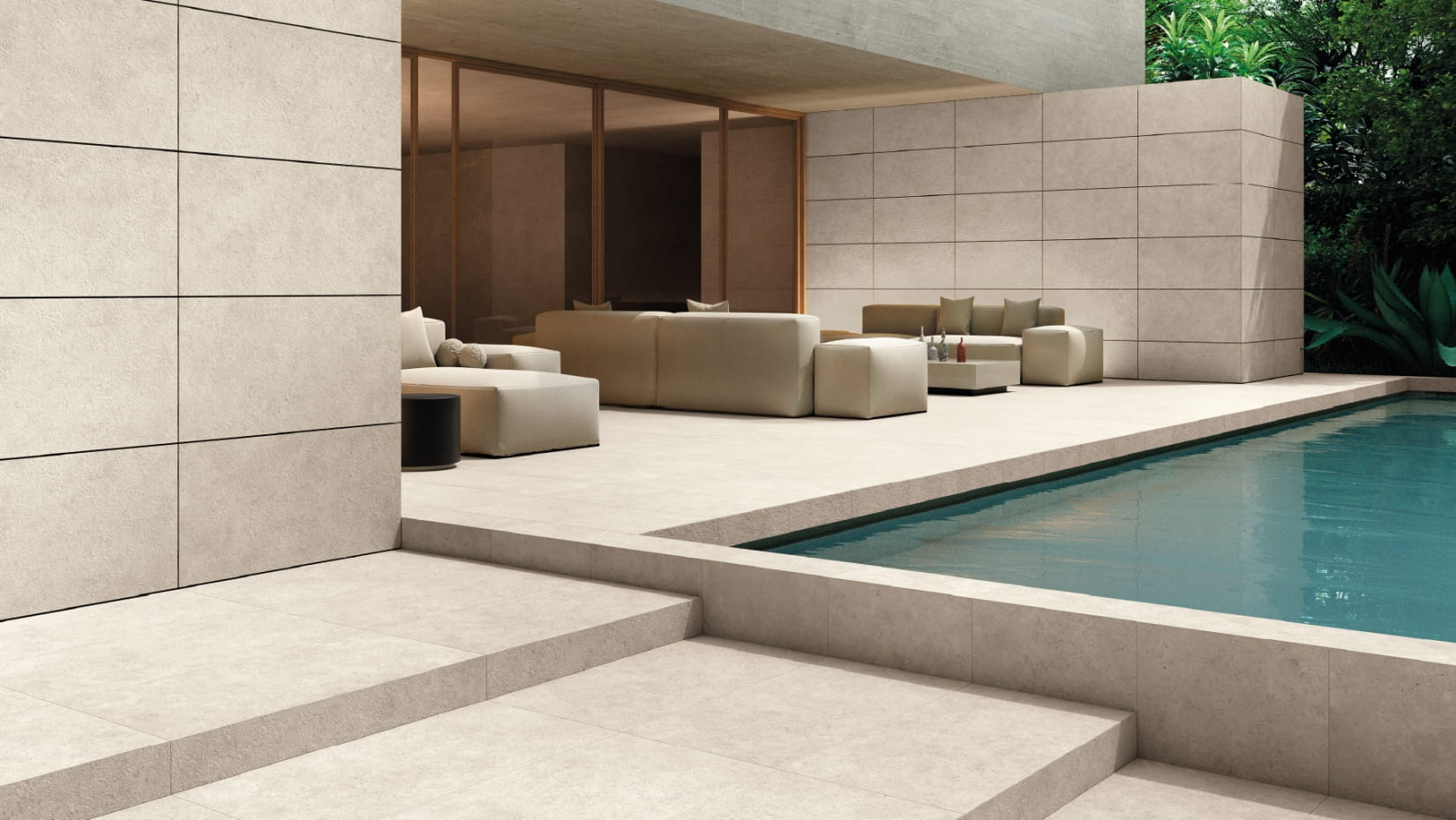Основное преимущество Fossil в частном строительстве — возможность использовать одну коллекцию внутри и снаружи. Стандартная версия 9 мм на кухне, прихожей, гостиной. Версия X2 20 мм на террасе, у бассейна, на садовых дорожках.